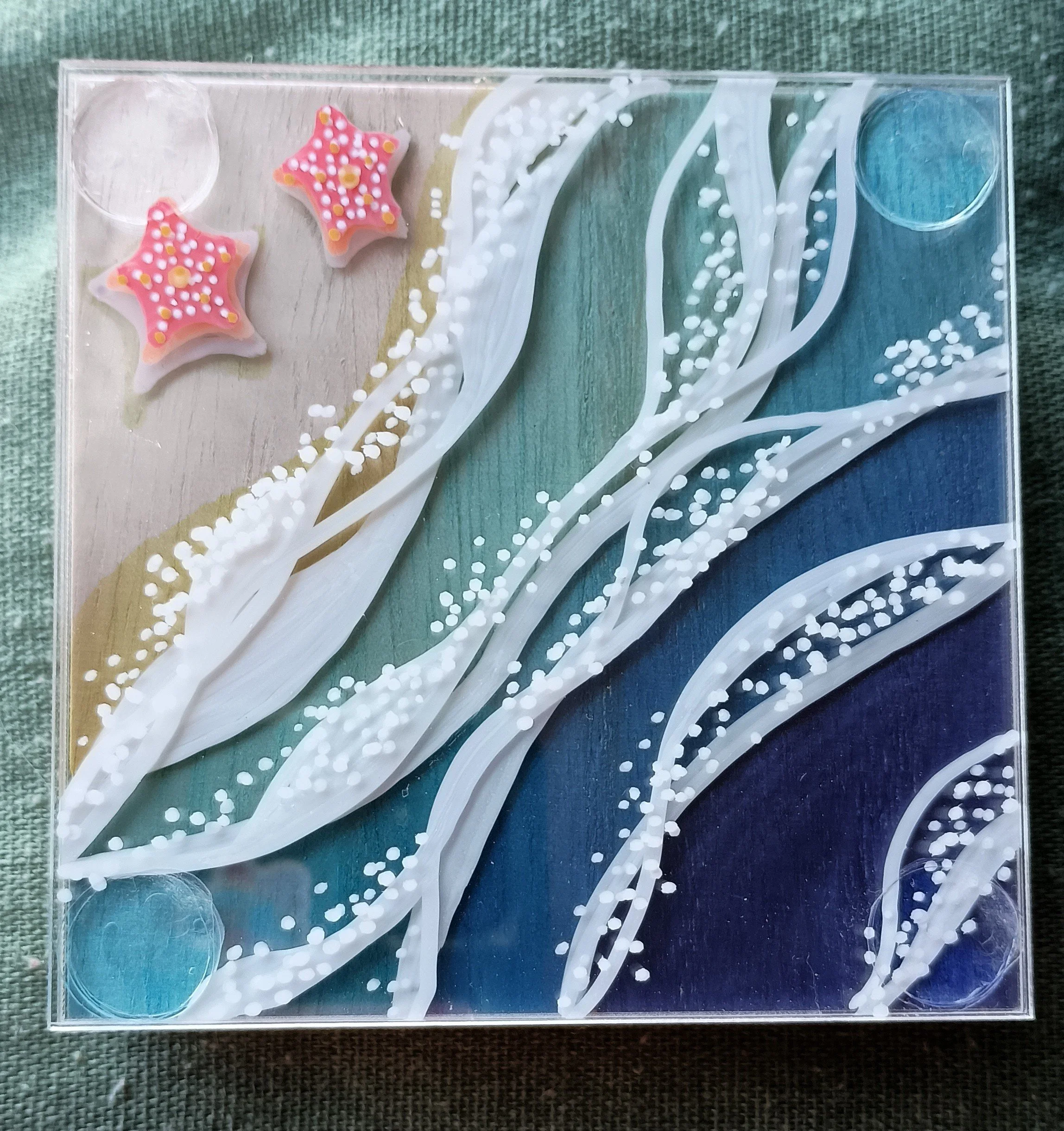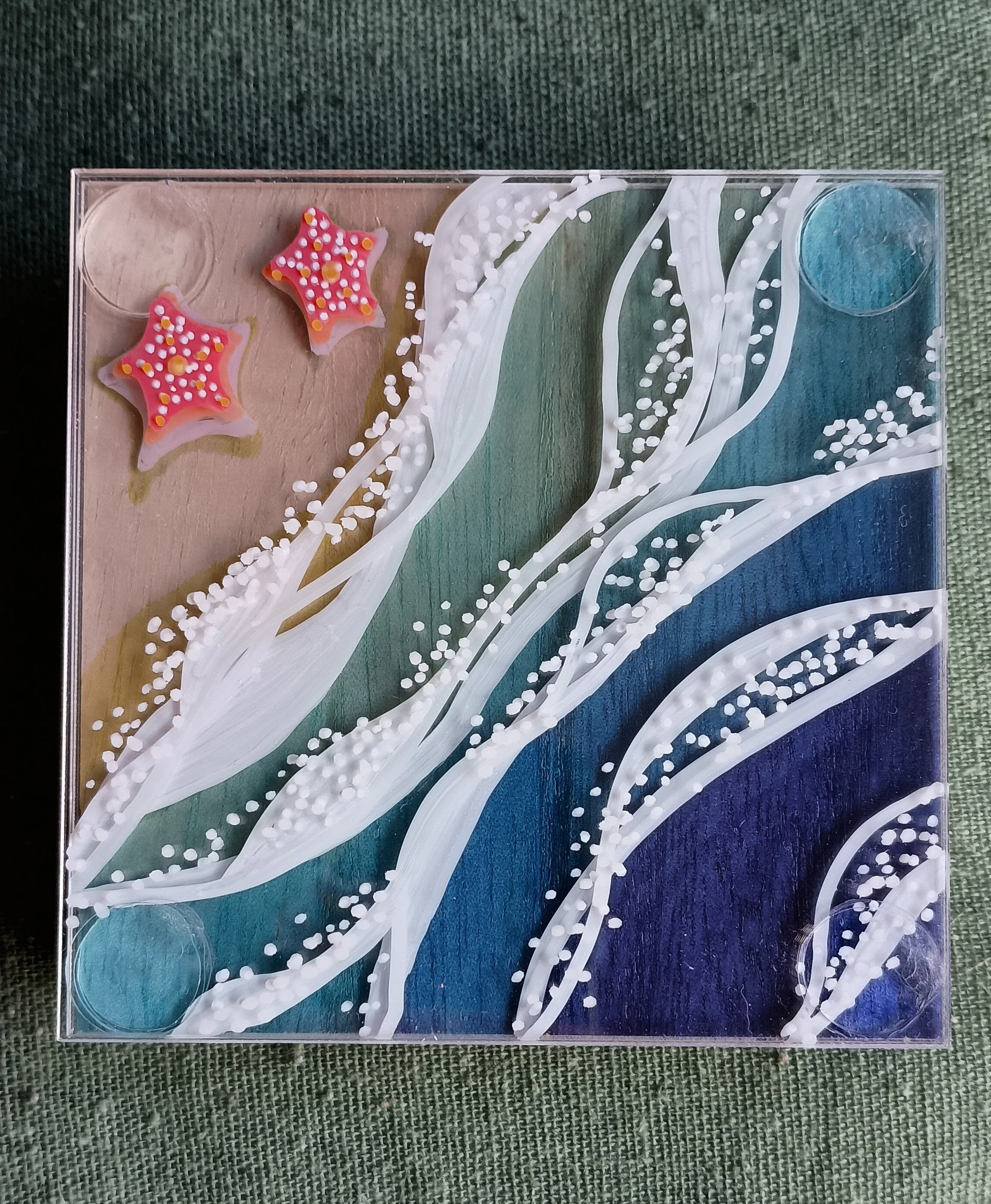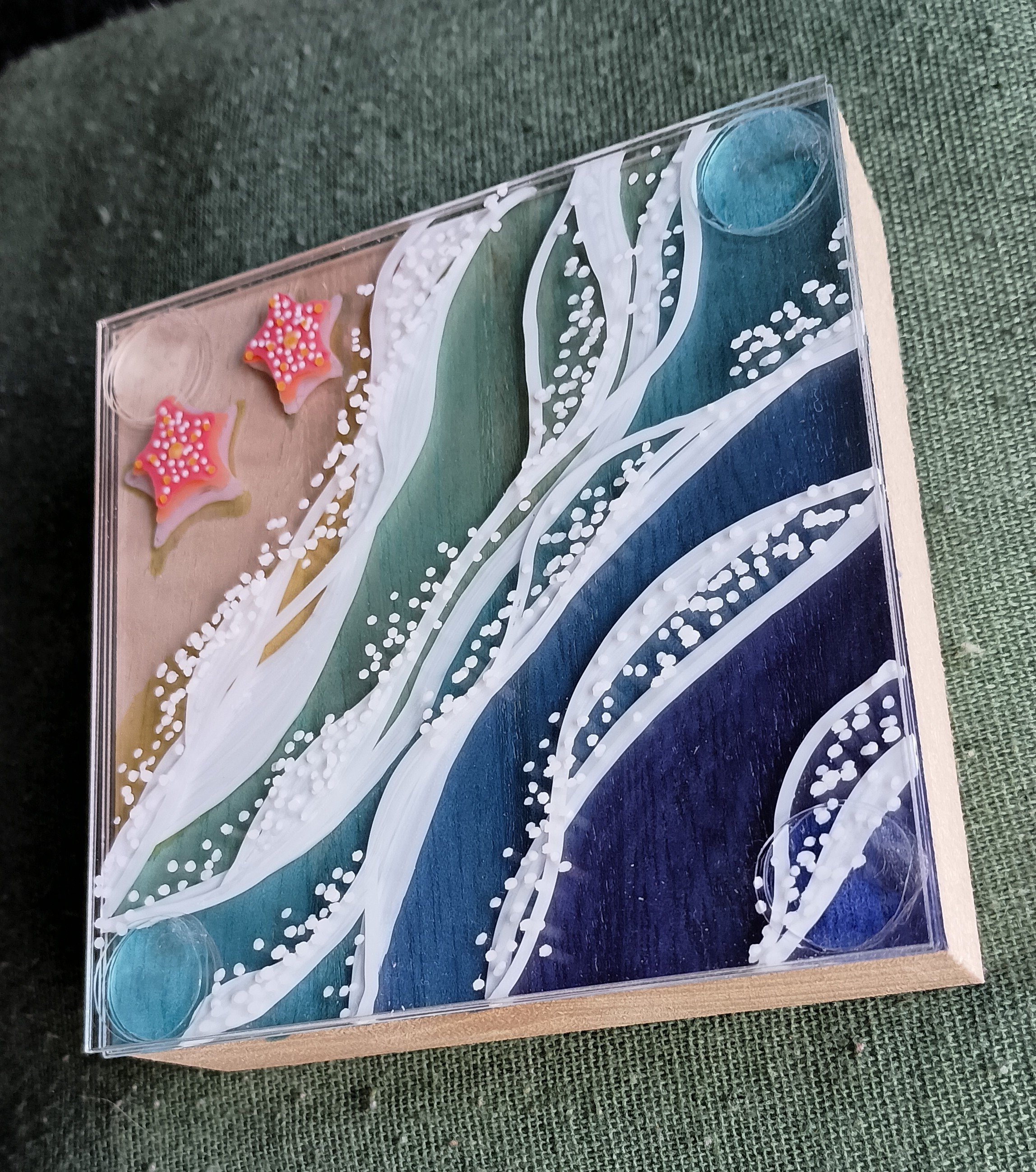 Shop › Starfish on the Beach 4x4 Image 1 of 3 Image 2 of 3 Image 3 of 3 Starfish on the Beach 4x4 $15.00 Hand-painted Acrylic/Wood Block 4”x4” Add To Cart Added! Hand-painted Acrylic/Wood Block 4”x4”